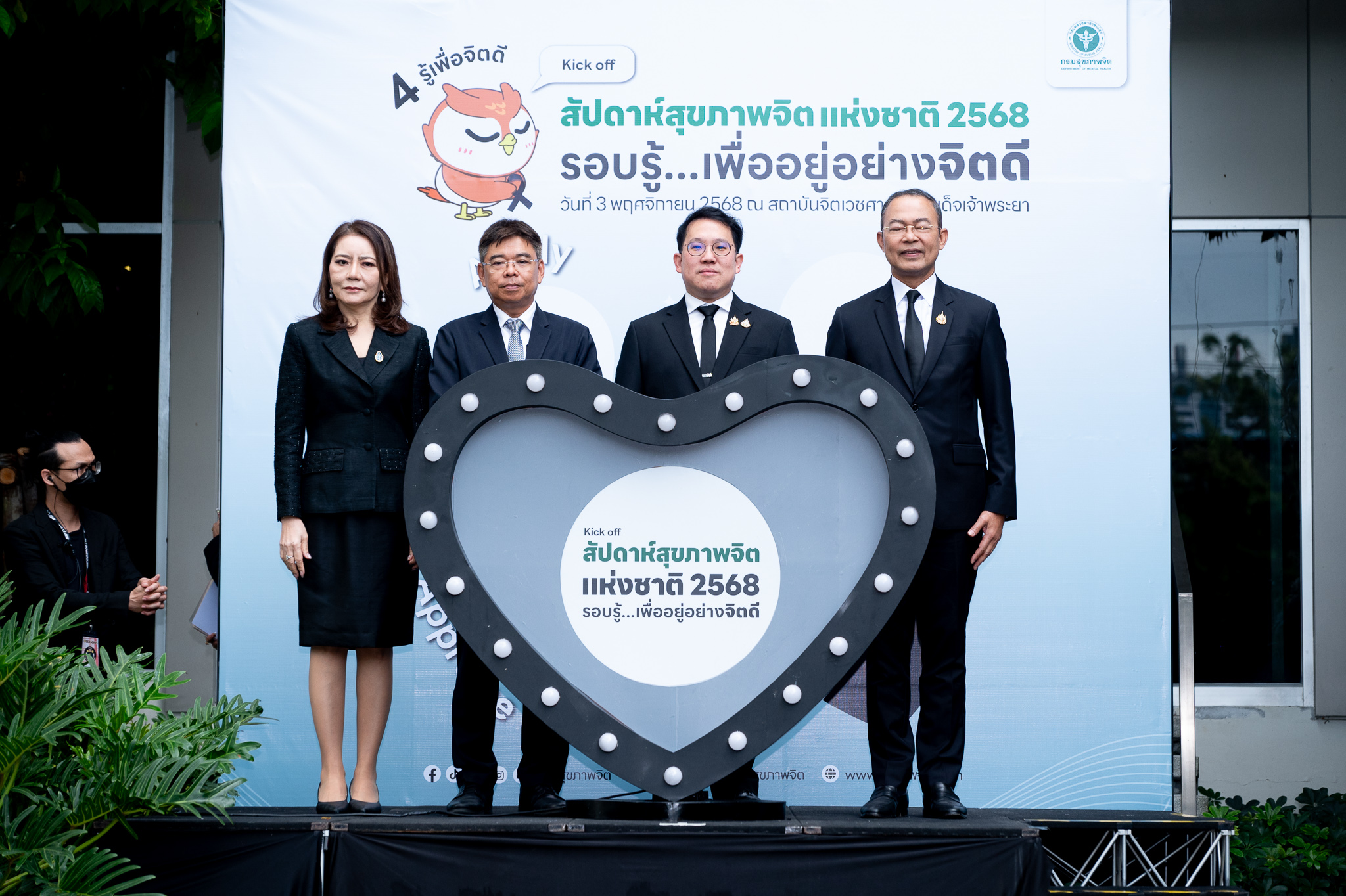 เช้าวันที่ (3 พ.ย. 2568 ) นายพัฒนา พร้อมพัฒน์ รัฐมนตรีว่าการกระทรวงสาธารณสุข ให้เกียรติเป็นประธานในพิธีเปิดกิจกรรม KICK OFF สัปดาห์สุขภาพจิตแห่งชาติ ประจำปี 2568 "รอบรู้...เพื่ออยู่อย่างจิตดี" โดยมี นพ.ศักดา อัลทาชน์ รองปลัดกระทรวงสาธารณสุข เป็นผู้กล่าวรายงาน พร้อมด้วยนพ.กิตติศักดิ์ อักษรวงศ์ อธิบดีกรมสุขภาพจิต นพ.จุมภฏ พรมสีดา รองอธิบดีกรมสุขภาพจิต พญ.ณิชาภา สวัสดิกานนท์ รองอธิบดีกรมสุขภาพจิต นพ.ศรุตพันธุ์ จักรพันธุ์ ณ อยุธยา ผู้อำนวยการสถาบันจิตเวชศาสตร์สมเด็จเจ้าพระยา และคณะผู้บริหาร บุคลากร สถาบันจิตเวชศาสตร์สมเด็จเจ้าพระยา กรมสุขภาพจิต เข้าร่วมงาน และร่วมให้การต้อนรับ คณะรัฐมนตรีว่าการกระทรวงสาธารณสุข พร้อมคณะผู้บริหาร เยี่ยมชมการรักษาด้วยเครื่องกระตุ้นสมองด้วยคลื่นแม่เหล็กไฟฟ้าแบบลึก ,เยี่ยมเสริมพลังใจแก่ผู้ป่วย ณ หอผู้ป่วยพวงทอง , เยี่ยมชมร้านเพื่อนหลังคาแดง และร้านกาแฟหลังคาแดง ณ สถาบันจิตเวชศาสตร์สมเด็จเจ้าพระยา