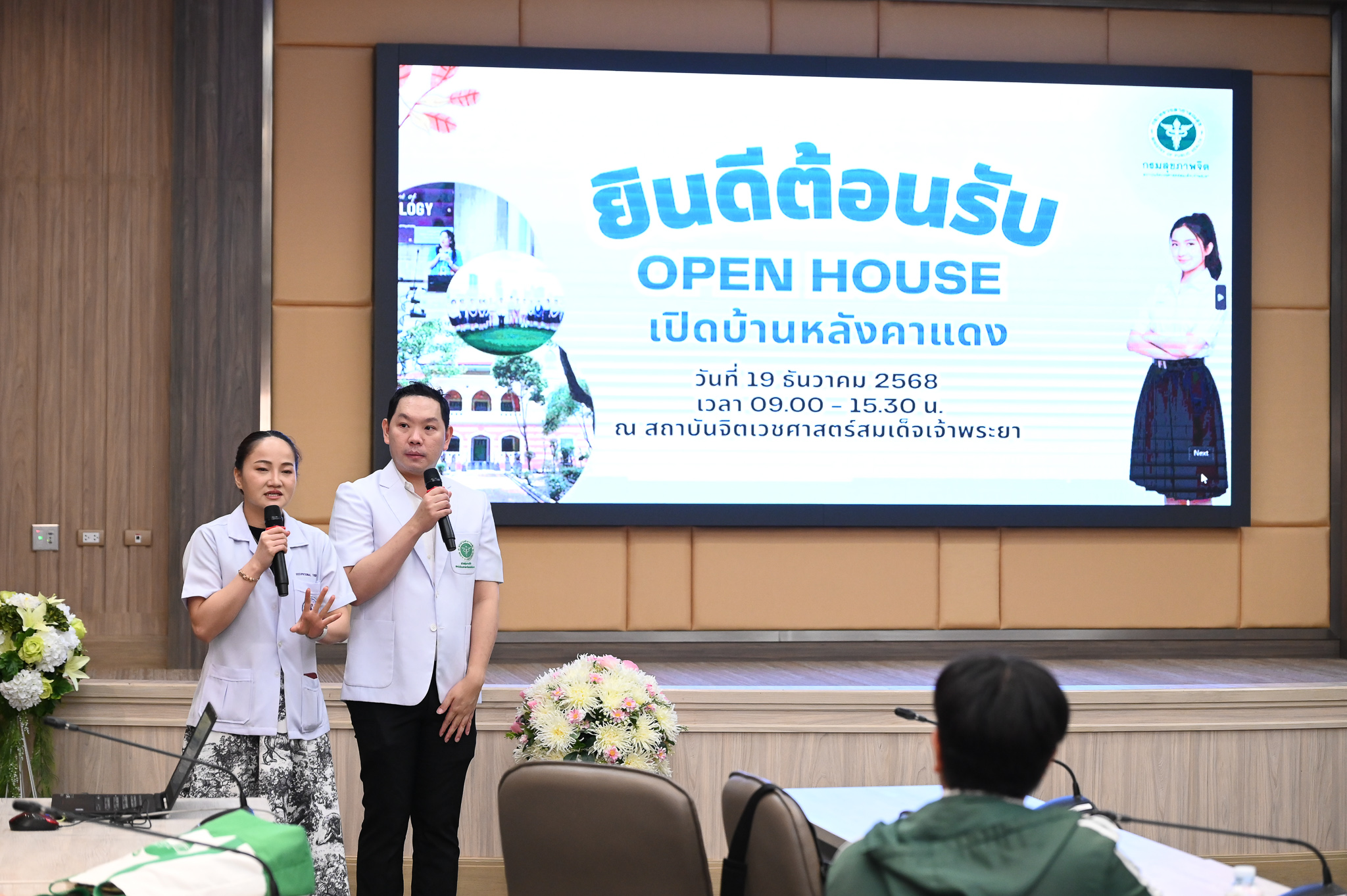 เช้าวันนี้(19 ธ.ค. 2568 ) นพ.ศรุตพันธุ์ จักรพันธุ์ ณ อยุธยา ผู้อำนวยการสถาบันจิตเวชศาสตร์สมเด็จเจ้าพระยา มอบหมายให้ พญ.ธนียา วงศ์จงรุ่งเรือง รองผู้อำนวยการกลุ่มภารกิจบริการจิตเวชและสุขภาพจิต เป็นประธานในพิธีเปิดกิจกรรม Open House "เปิดบ้านหลังคาแดง" โดยมี นพ.ณัฐปกรณ์ โพธิ์ทอง หัวหน้ากลุ่มงานฝึกอบรม และมีตัวแทนสหวิชาชีพกลุ่มงานต่างๆเข้าร่วม วัตถุประสงค์เพื่อเปิดโอกาสให้นักเรียน/นักศึกษาที่เข้าร่วมกิจกรรมได้ทราบบทบาทหน้าที่ และเรียนรู้กระบวนการทำงานของสหวิชาชีพผ่านกิจกรรมเยี่ยมชมหน่วยงานต่างๆ ภายในสถาบันจิตเวชศาสตร์สมเด็จเจ้าพระยา เพื่อสร้างความตระหนักรู้ และเข้าใจตนเอง เพื่อนำไปประกอบการตัดสินใจหรือแรงบันดาลใจในการศึกษาต่อในอนาคต โดยได้เข้าเยี่มชมหน่วยงานต่างๆ เช่น กลุ่มงานการพยาบาลผู้ป่วยนอกจิตเวช(OPD), กลุ่มงานกลุ่มงานฟื้นฟูสุขภาพจิตและจิตเวช (OT),กลุ่มงานประสาทจิตเวชศาสตร์,กลุ่มงานสังคมสงเคราะห์,กลุ่มงานการแพทย์,กลุ่มงานเภสัชกรรม และกลุ่มงานจิตวิทยา รวมทั้งเยี่ยมชม พิพิธภัณฑ์โรงพยาบาลสมเด็จพระเจ้าพระยา