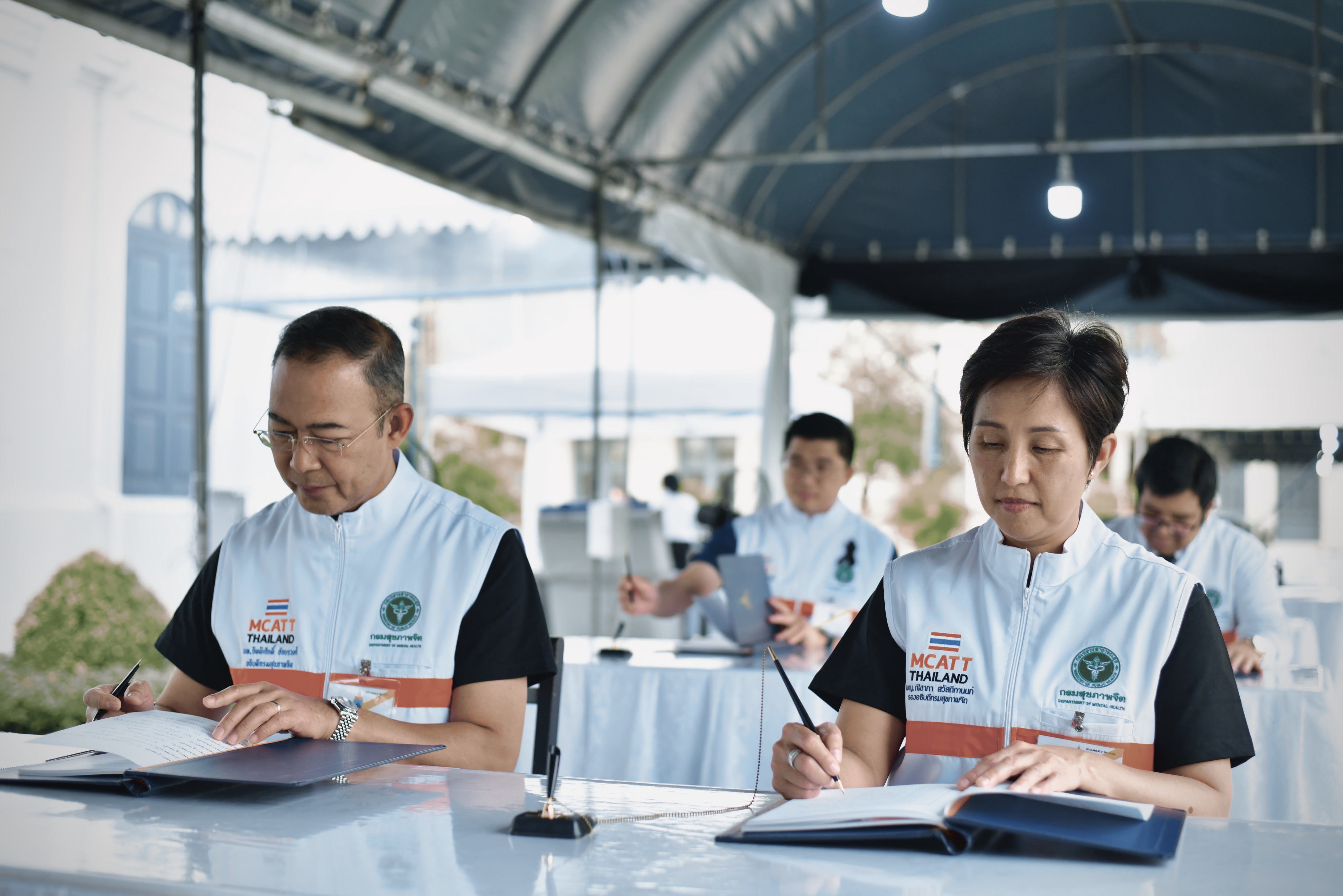 บ่ายวันนี้ (28 ต.ค.2568) นพ.กิตติศักดิ์ อักษรวงศ์ อธิบดีกรมสุขภาพจิต พร้อมด้วย พญ.ณิชาภา สวัสดิกานนท์ รองอธิบดีกรมสุขภาพจิต, นพ.ศรุตพันธุ์ จักรพันธุ์ ณ อยุธยา ผู้อำนวยการสถาบันจิตเวชศาสตร์สมเด็จเจ้าพระยา นพ.นพพร ตันติรังสี ผู้อำนวยการกองบริหารบริการสุขภาพจิต  เดินทางลงพื้่นที่ตรวจเยี่ยมและให้กำลังใจทีมสหวิชาชีพ MATT สถาบันจิตเวชศาสตร์สมเด็จเจ้าพระยา กรมสุขภาพจิต ในการร่วมภารกิจปฎิบัติหน้าที่คัดกรองสุขภาพจิตประชาชน เข้าถวายสักการะพระบรมศพเบื้องหน้าพระฉายาลักษณ์ สมเด็จพระนางเจ้าสิริกิติ พระบรมราชินีนาถ พระบรมราชขนนีพันปีหลวง ณ ศาลาสหทัยสมาคม ในพระบรมมหาราชวัง