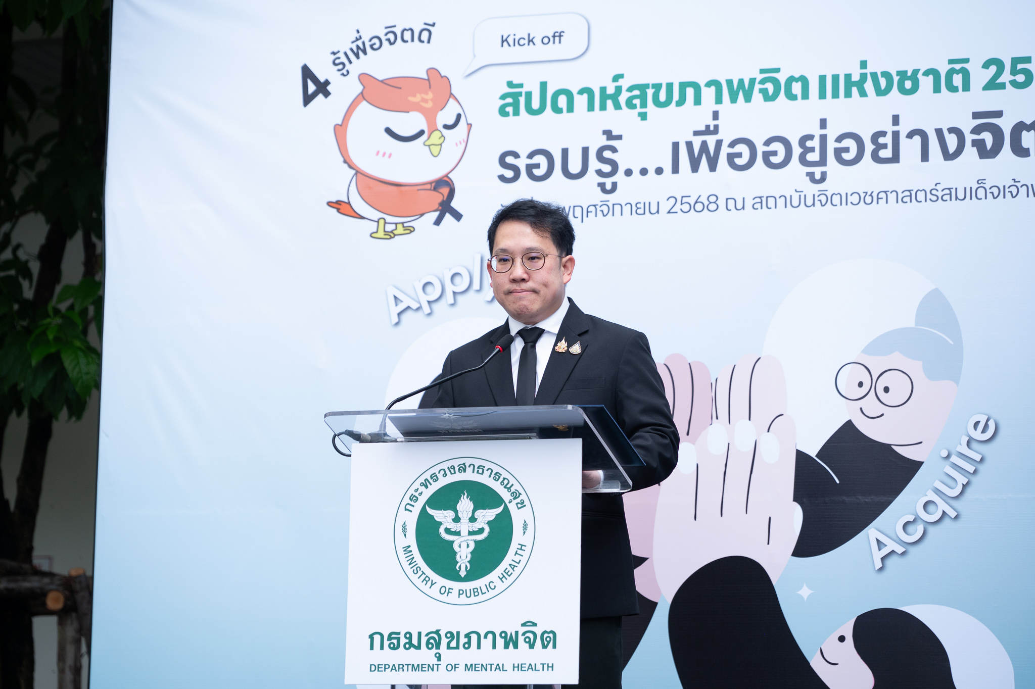 เช้าวันที่ (3 พ.ย. 2568 ) นายพัฒนา พร้อมพัฒน์ รัฐมนตรีว่าการกระทรวงสาธารณสุข ให้เกียรติเป็นประธานในพิธีเปิดกิจกรรม KICK OFF สัปดาห์สุขภาพจิตแห่งชาติ ประจำปี 2568 "รอบรู้...เพื่ออยู่อย่างจิตดี" โดยมี นพ.ศักดา อัลทาชน์ รองปลัดกระทรวงสาธารณสุข เป็นผู้กล่าวรายงาน พร้อมด้วยนพ.กิตติศักดิ์ อักษรวงศ์ อธิบดีกรมสุขภาพจิต นพ.จุมภฏ พรมสีดา รองอธิบดีกรมสุขภาพจิต พญ.ณิชาภา สวัสดิกานนท์ รองอธิบดีกรมสุขภาพจิต นพ.ศรุตพันธุ์ จักรพันธุ์ ณ อยุธยา ผู้อำนวยการสถาบันจิตเวชศาสตร์สมเด็จเจ้าพระยา และคณะผู้บริหาร บุคลากร สถาบันจิตเวชศาสตร์สมเด็จเจ้าพระยา กรมสุขภาพจิต เข้าร่วมงาน และร่วมให้การต้อนรับ คณะรัฐมนตรีว่าการกระทรวงสาธารณสุข พร้อมคณะผู้บริหาร เยี่ยมชมการรักษาด้วยเครื่องกระตุ้นสมองด้วยคลื่นแม่เหล็กไฟฟ้าแบบลึก ,เยี่ยมเสริมพลังใจแก่ผู้ป่วย ณ หอผู้ป่วยพวงทอง , เยี่ยมชมร้านเพื่อนหลังคาแดง และร้านกาแฟหลังคาแดง ณ สถาบันจิตเวชศาสตร์สมเด็จเจ้าพระยา